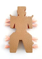 Objeto de decoración para colgar. Hombre de gres hecho a mano. Modelado, carvado y pintado con engobes cerámicos.