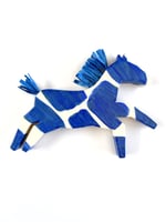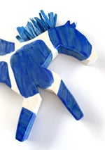 Objeto de decoración para colgar. Caballo de gres hecho a mano. Modelado, carvado y pintado con esmaltes cerámicos.